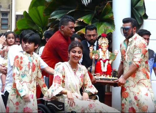Mumbai: Shilpa Shetty hurt her leg recently while shooting for one of her projects and has been in a wheelchair ever since. However, that didn't stop her from celebrating Ganesh Chaturthi.
