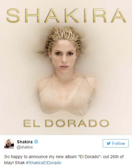 The singer seems very delight as she took her social account to share the post and wrote: "So happy to announce my new album "El Dorado"- out 26th of May! Shak #ShakiraElDorado"