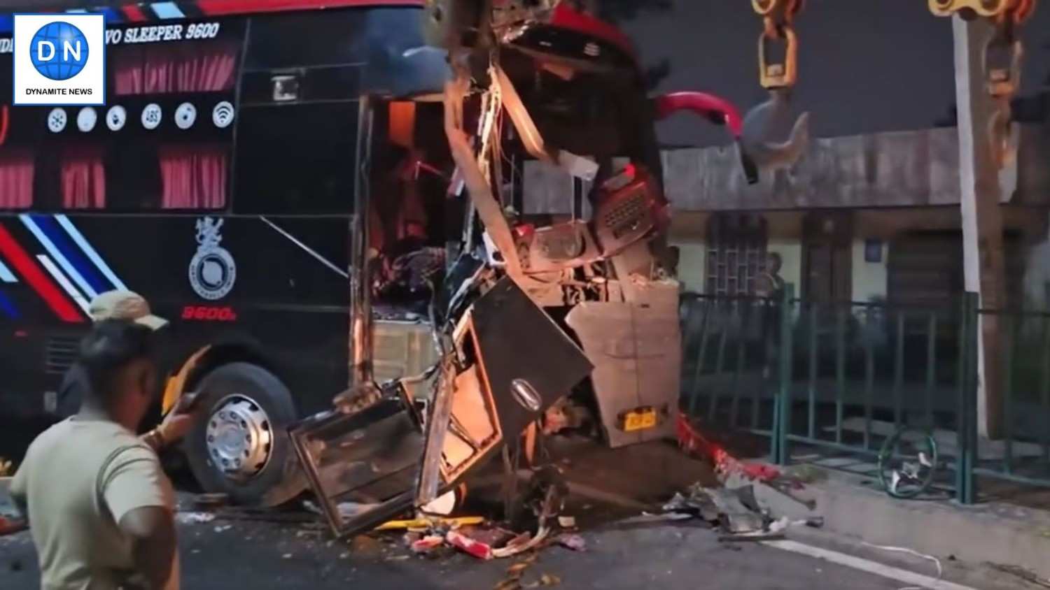 The intensity of the accident was so severe that the front cabin of the bus was damaged to a huge extent and left the driver trapped in the middle.