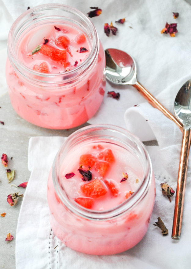 This pink drink, made with watermelons, rose syrup, chilled milk, and ice cubes, is a favourite near Jama Masjid in Old Delhi.