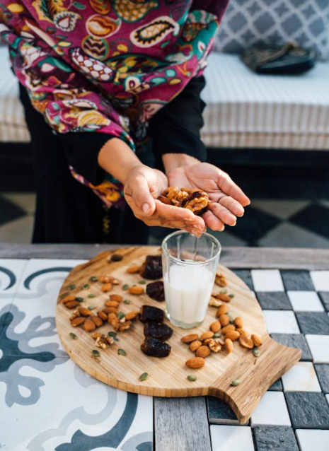 Dates are not only nutritious but also great for boosting immunity. They're often eaten right after the sunset prayer to break the fast quickly. You can easily make a nutritious drink at home by blending deseeded dates with milk.