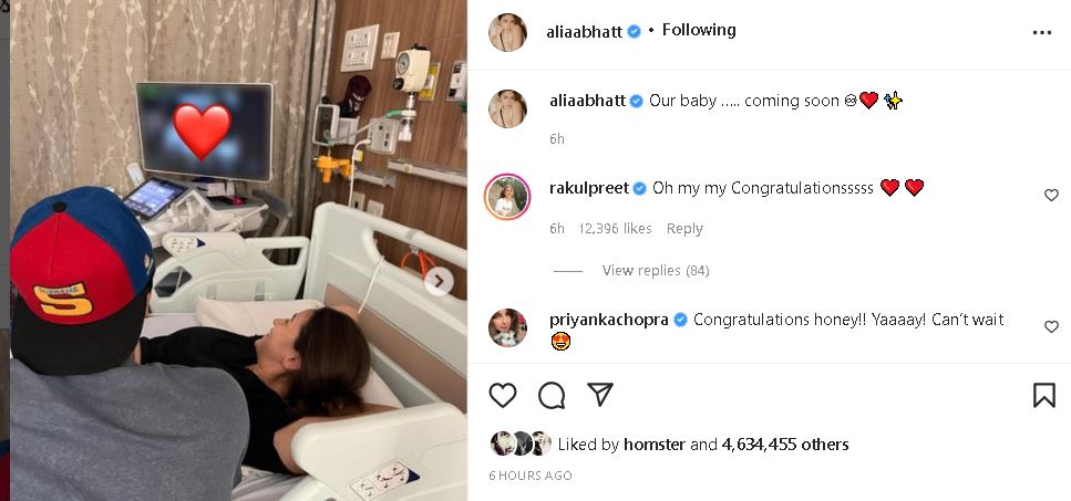 "Our baby ..... coming soon," Alia wrote on Instagram, adding a picture from her ultrasound appointment. She also posted a picture which features two lions and a lion cub.