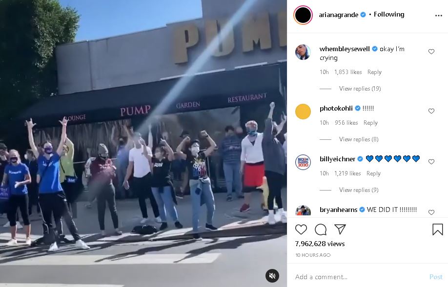 Popstar Ariana Grande reacted by taking a joyride through what appeared to be Los Angeles. The 27-year-old songstress showed footage from a car window in which people cheered loudly with their hands in the air. Some stood on cars to scream at the top of their lungs.