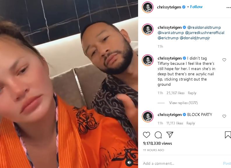 Chrissy Teigen and John Legend celebrated with a dance to an explicit anti-Trump song by rapper YG titled 'FDT'.