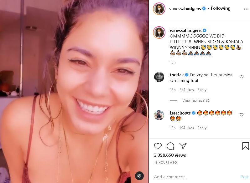 Actor Venessa Hudgens was seen screaming "Hallelujah," in her Instagram post that read,