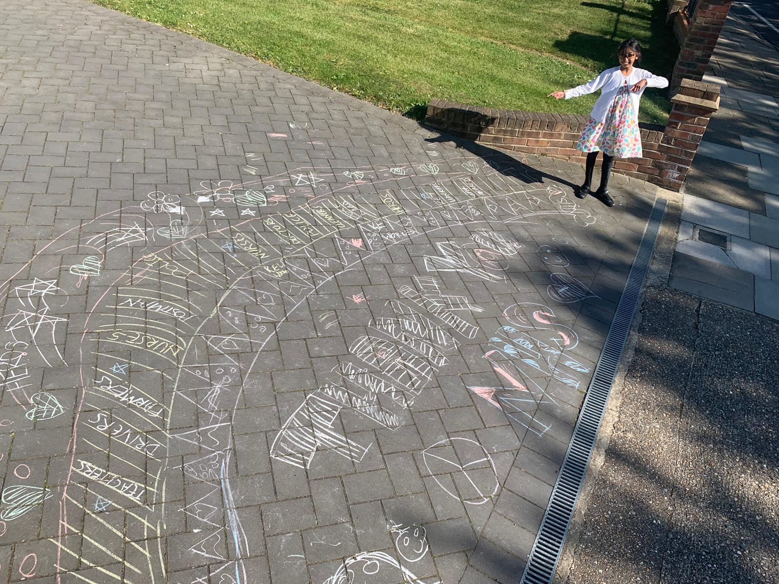 London: Nine-year-old Saanvi Tibrewal has designed this artwork saluting the National Health Service (NHS) and other key workers in the UK. She has created the inspirational artwork on the front of her home, with admirable support from her three year old sister, Saniya.