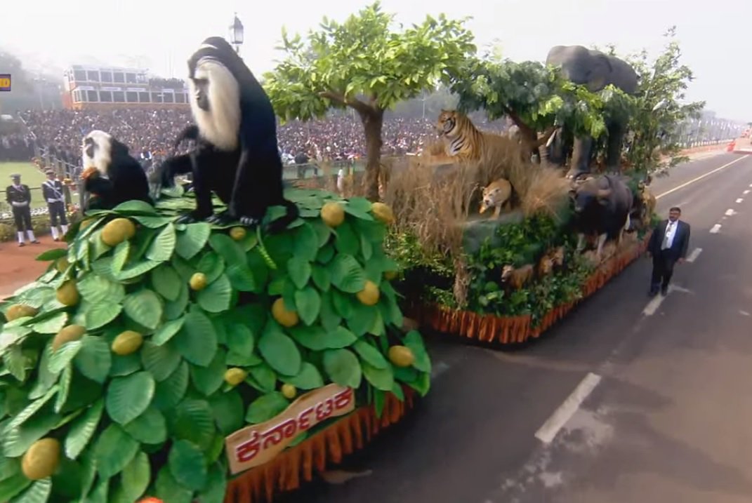 The tableau of Kerala depicted Kettukazcha, an offering of devotees associated with the temple festivals and farming community.