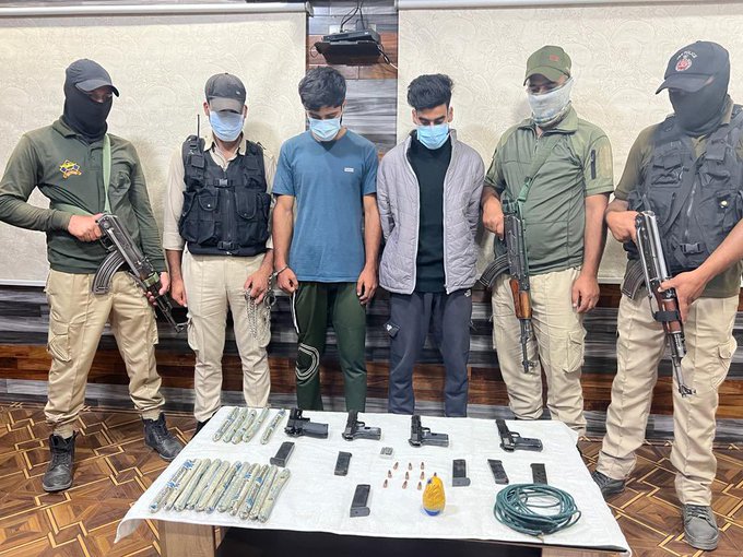Arms/ammunition, explosives & incriminating material like 4 pistols, live rounds, 16 gelatine sticks, grenade etc. recovered. pic.twitter.com/UgfiZCHtIn— Srinagar Police (@SrinagarPolice) June 30, 2022