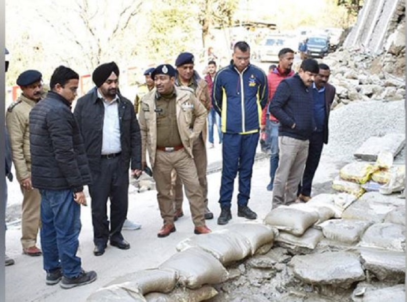 Joshimath (Uttarakhand): Chief Secretary Sukhvir Singh Sandhu, Director General of Police (DGP) Ashok Kumar and Secretary to Chief Minister RK Meenakshi Sundaram on Sunday conducted an on-site inspection of landslide areas of Joshimath town.