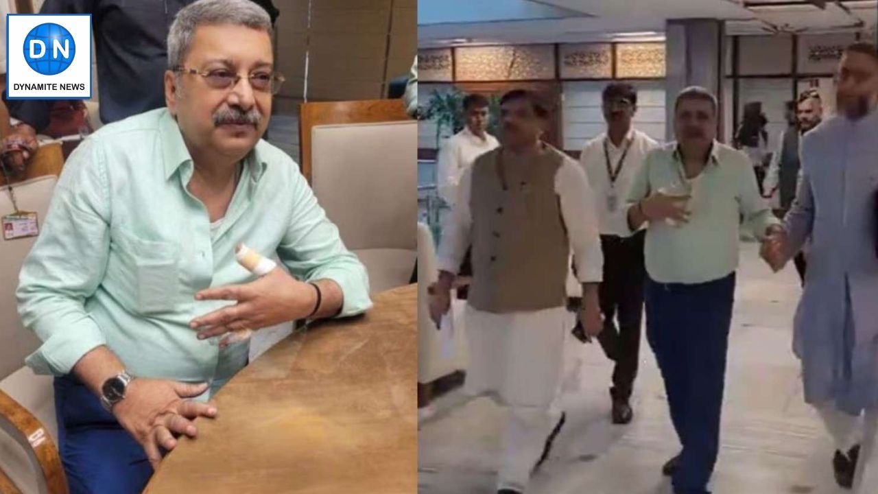 AIMIM chief Asaduddin Owaisi and AAP leader Sanjay Singh later seen escorting the TMP MP out.