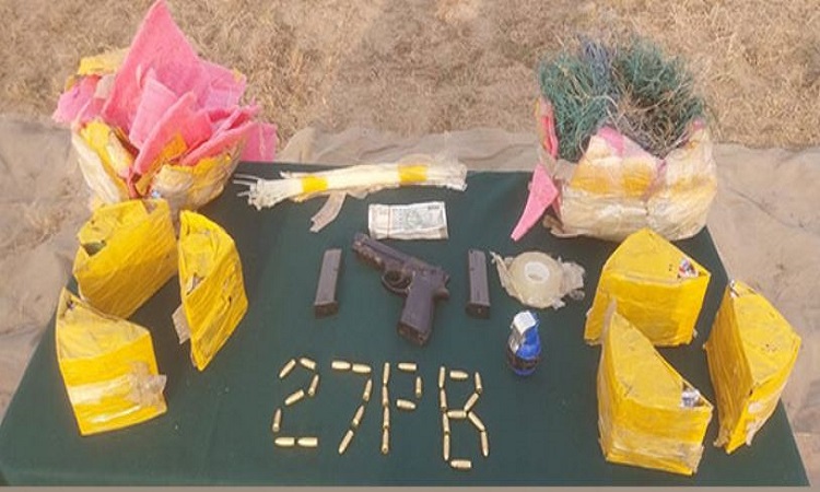 Jammu: The Jammu and Kashmir (J-K) Police recovered a large cache of arms and ammunition from a package which was dropped from a drone near LOC in the Akhnoor sector in Jammu district on Sunday, officials said.