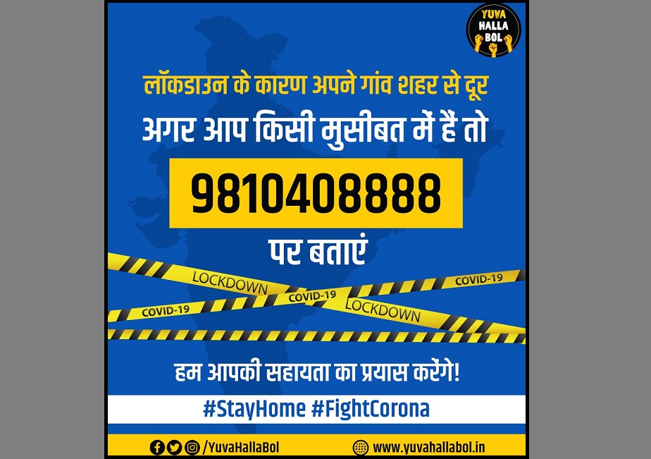 Youth and Unemployment rights organisation Yuva Halla Bol has begun helping some of the most vulnerable people stuck away from homes due to the nationwide lockdown to fight the COVID19 pandemic. We have launched the helpline no. 9810408888 and have requested people to contact in any kind of lockdown induced emergency situations.