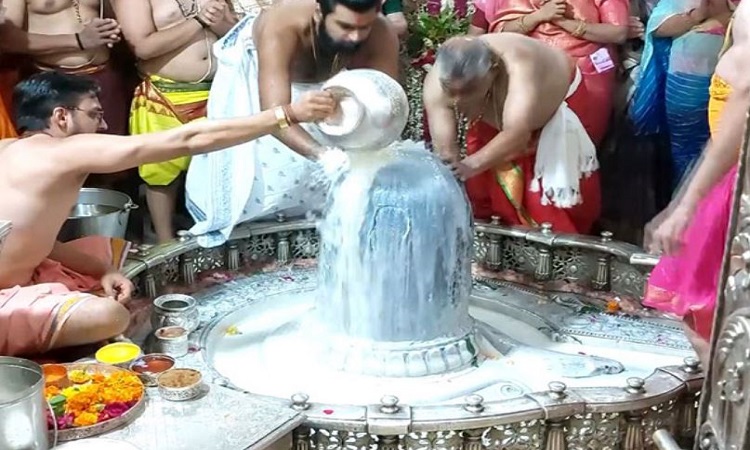 "After the 'Panchamrit' Abhishek, Baba Mahakal was greeted with Bhasma. Later, Rakhi was tied to him. On this occasion, laddoos were offered to devotees. Bhasma Aarti was also performed. Devotees gathered in large numbers in the courtyard of Baba Mahakaleshwar temple', a devotee said.