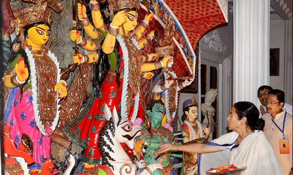 Last year also the CM had composed the theme song of Suruchi Sangha puja -"Boichitrer muktoy gantha ekotar monihar" (the jewel of unity is stitched with a string of pearls of diversity). Last year singer Shreya Ghosal had lent her voice to the theme song.