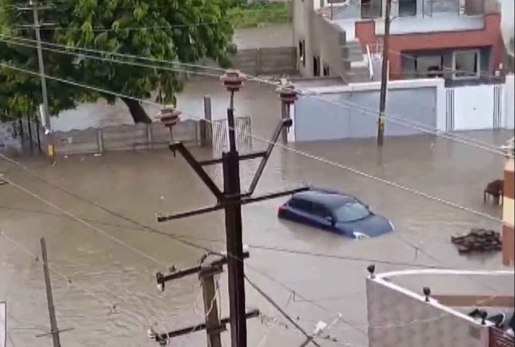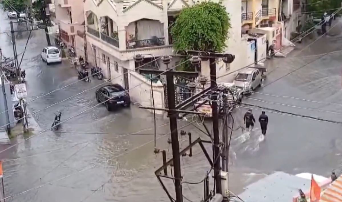 On Monday, several areas of Ahmedabad, Gujarat witnessed severe waterlogging due to heavy rainfall. People and vehicles were seen wading through knee-deep waters. Waterlogging also caused traffic snarls in several parts of the city.