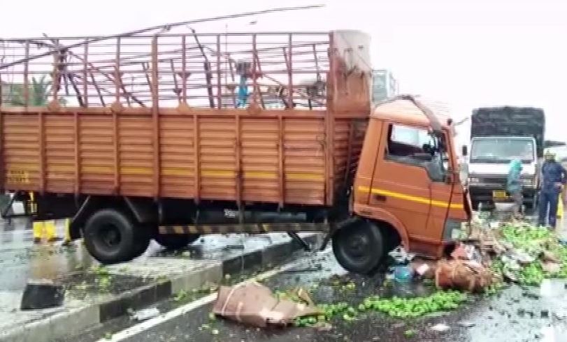 According to the police, a truck loaded with vegetables reportedly flipped over after a car smashed into it from the back.