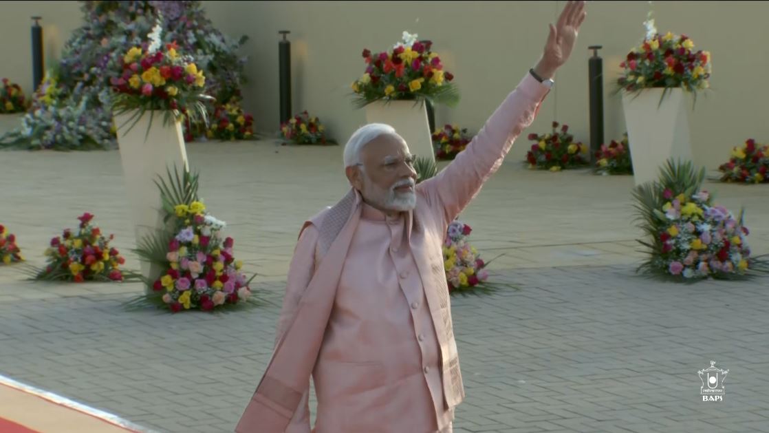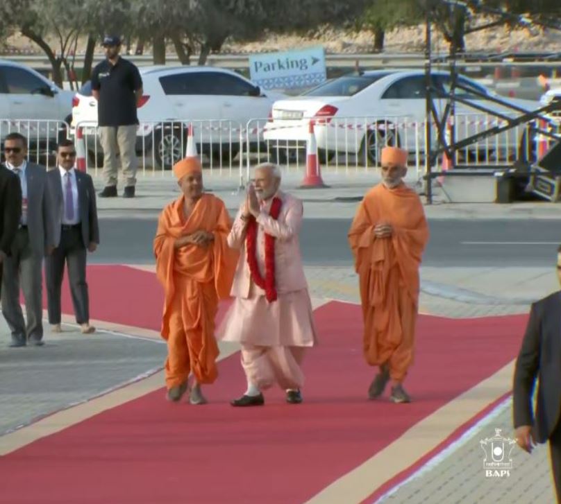 Abu Dhabi: Prime Minister Narendra Modi arrived at the majestic BAPS temple in Abu Dhabi which will be inaugurated by him.