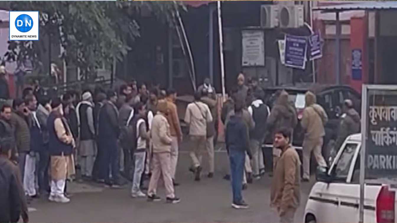 New Delhi : All India Majlis-e-Ittehadul Muslimeen (AIMIM) candidate from Delhi's Mustafabad seat, Tahir Hussain on Thursday was brought to the DM office in Nandnagri by the Delhi Police for filing of nomination papers for the upcoming Delhi elections.