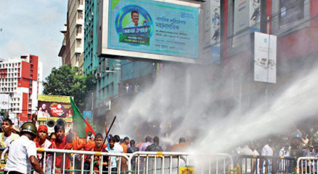 Police used water cannon and lathi-charged to disperse the Bharatiya Janta Party (BJP) workers in the city who had gathered for state-wide ‘Nabanna Chalo’ agitation against the Chief Minister Mamata Banerjee-led government, on Thursday.
