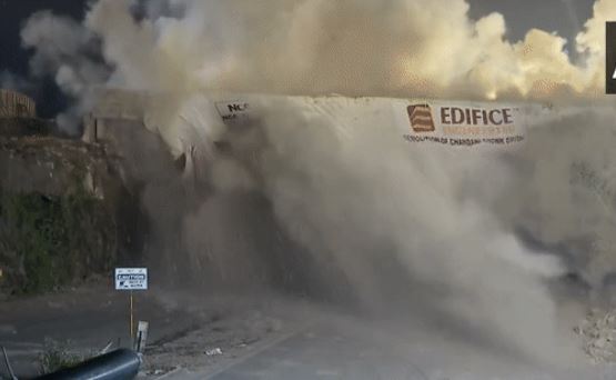 This demolition was carried out by the National Highway Authority of India and the Pune district administration with the help of a team from the Noida-based Edifice Engineering consultancy company that recently demolished the Supertech Twin Towers.