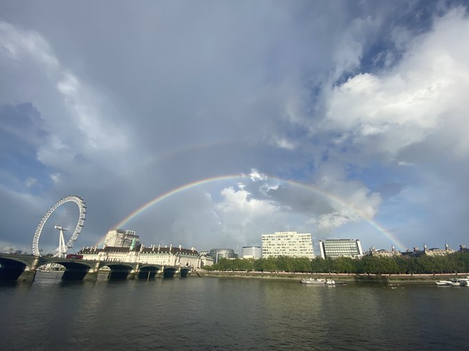 The unusual phenomenon appeared in the sky as the clouds cleared after downpours across the London on Thursday afternoon.