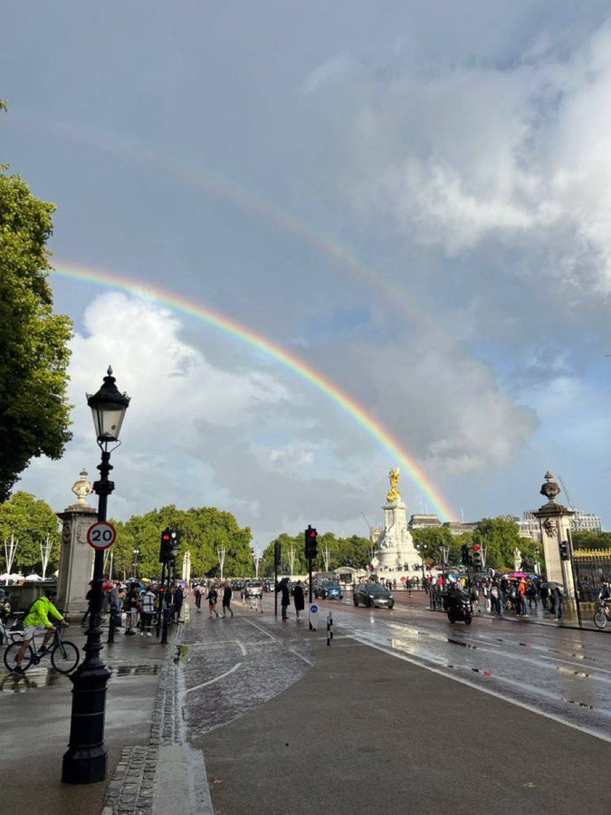 London: A double rainbow that appeared over the Buckingham Palace minutes after Queen Elizabeth II's death was announced and the public gathered outside to pay their respects, have left many across the globe mesmerized.
