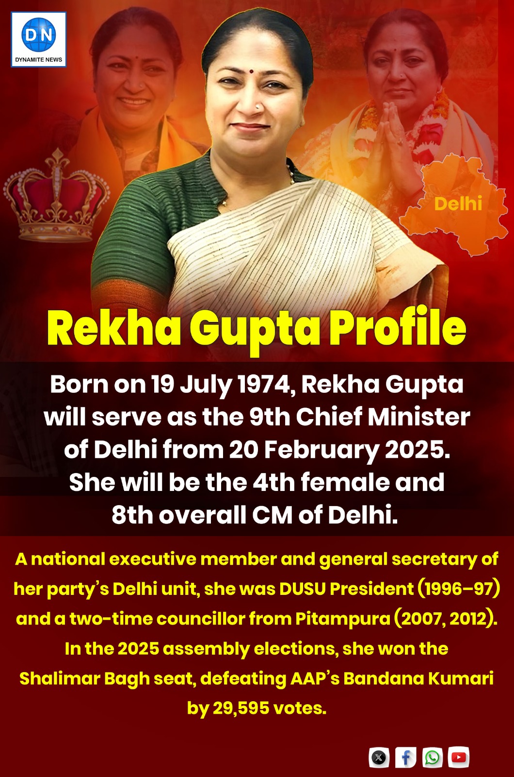Rekha Gupta was born on 19 July 1974. She will serve as 9th Chief Minister of Delhi from 20 February 2025.