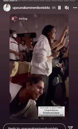 Upasna also shared the particular video on her Instagram handle. For the unversed, 'RRR' is SS Rajamouli's directorial. It also features Jr NTR in the lead role. It has earned Rs 257 crore worldwide on day one of its release on Friday.