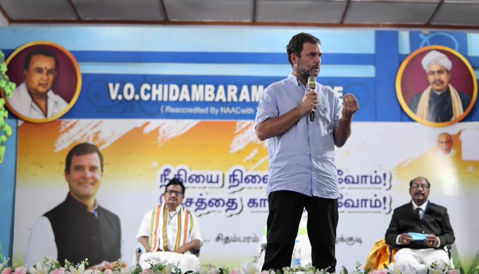 Explaining his statement at VOC College in Thoothukudi Rahul Gandhi said, "A nation is a balance between its institutions, if that balance is disturbed then the nation is disturbed. That is the central idea. What are the institutions that make up the Indian nation? There are elected institutions Lok Sabha, Vidhan Sabhas, Panchayats. There is the judiciary, there is a supporting free press. These institutions together, they hold the nation together in place."