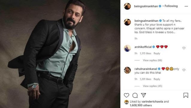 With the post he wrote, "To all my fans.. thank u for your love support n concern. Khayal rakho apna n parivaar ka (Take care of yourself and your family). God bless n loveee u," he captioned the post.