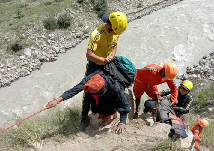 Chamoli (Uttarakhand): A team of the State Disaster Response Force (SDRF) on Monday rescued over 200 people after they got trapped in the Tamas area near Raini village in Chamoli district due to a landslide yesterday.