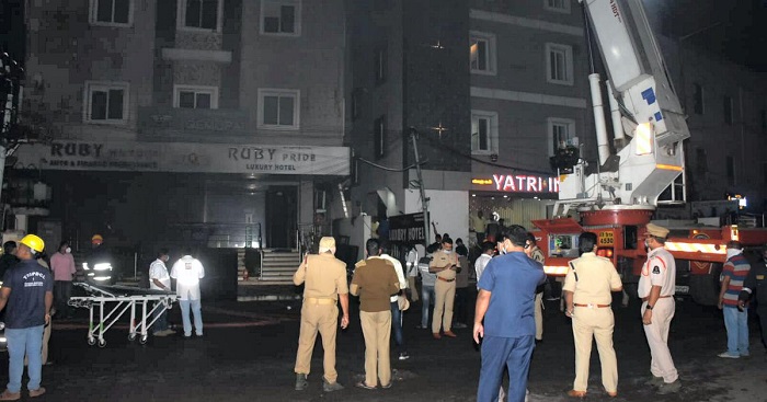 Atleast eight people died and several were injured when a fire broke out at a hotel in Secunderabad late on Monday night. The fire broke out at the charging unit of the electric scooter showroom on the ground floor of the hotel building. Following this, people on the upper floors got trapped in smoke.