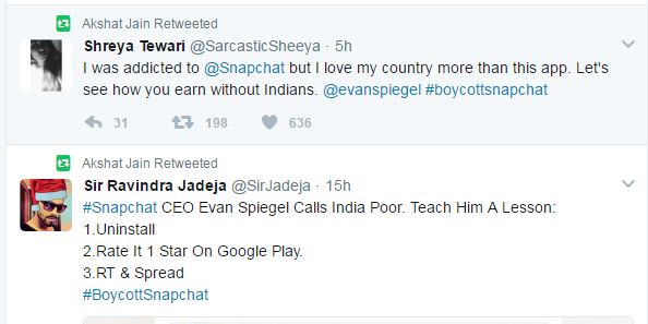 New Delhi: In the wake of Snapchat CEO Evan Spiegel's recent shunning of India being 'too poor' to implement initiatives to expand user base, the users in India retaliated against the social media platform, persuading the people to boycott the use of Snapchat henceforth.