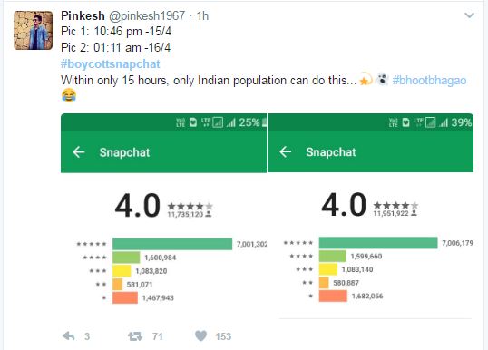 Soon after Variety published the alleged comment, the app's ratings on Google play store and other such platforms witnessed a sharp decline, a 4.4 to a 3.6 rating. Furthermore, the number of one-star rating by the users shot up from 39,102 to 192,906 in just 24 hours.