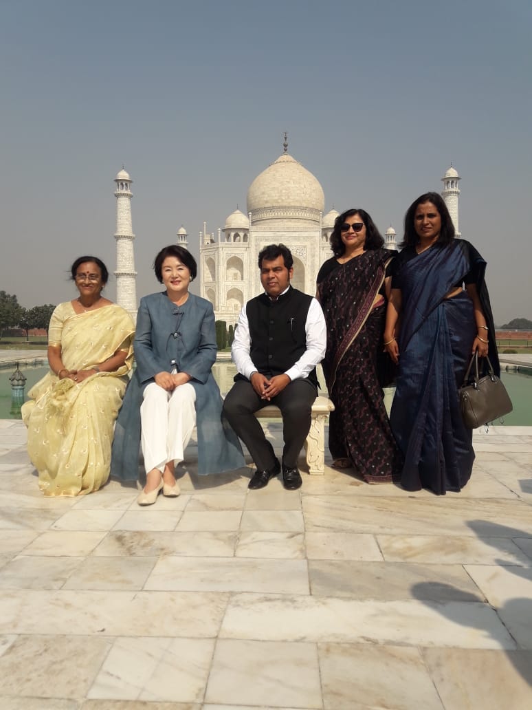 Agra: South Korean first lady Kim Jung-sook visited the Taj Mahal, the monument to love, on Wednesday.