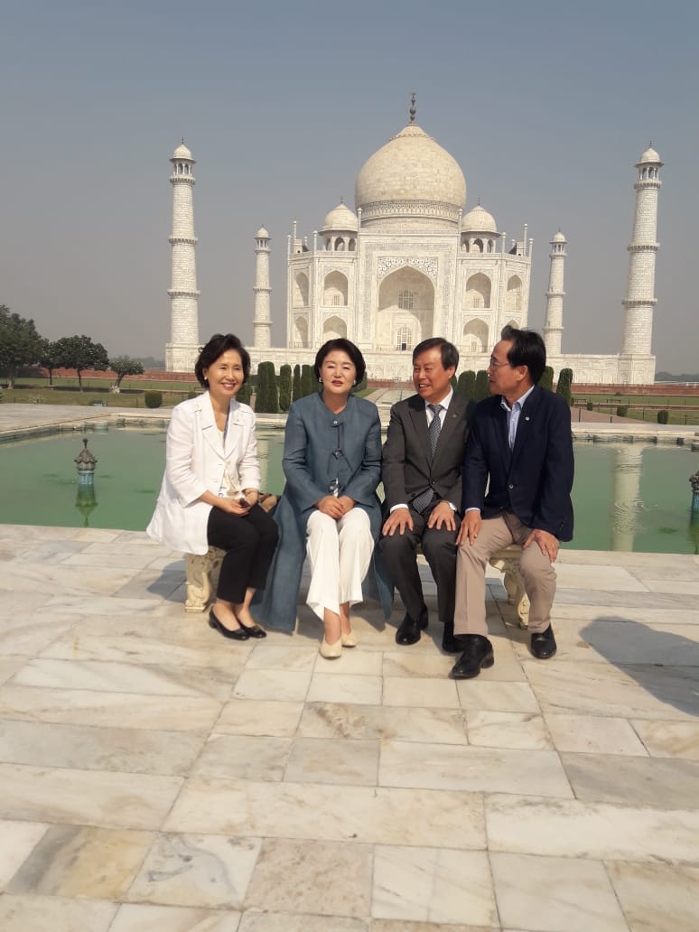 South Korean first lady Kim Jung-sook visited the Taj Mahal on Wednesday.