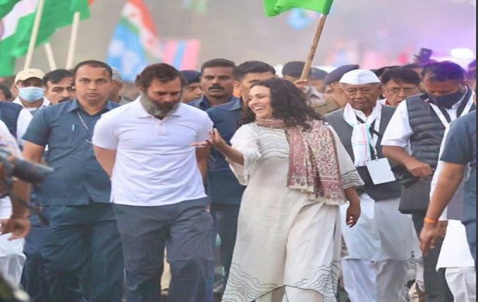 Ujjain: On Thursday, the 85th day of Bharat Jodo Yatra led by Party leader Rahul Gandhi, Actor Swara Bhasker joined the Yatra in Ujjain.