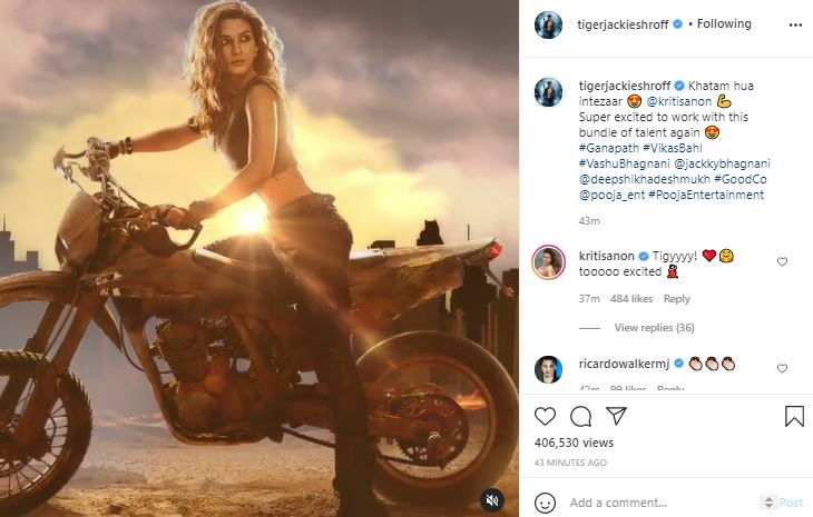 The 'Dilwale' star Sanon also chimed into the comments section, saying she feels elated to be paired with Shroff again.