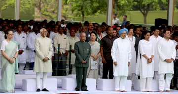 The leaders paid floral tributes to the visionary leader at his memorial Veer Bhumi here. Former President Pranab Mukherjee, former Vice President Hamid Ansari, Ghulam Nabi Azad, Bhupinder Singh Hooda and Ahmed Patel too paid tributes to the late leader.Priyanka Gandhi's husband and businessman Robert Vadra and her daughter Miraya Vadra were also present at the occasion.