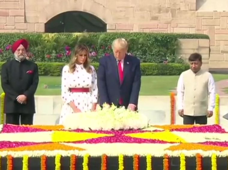 #WATCH Delhi: US President Donald Trump & First Lady Melania Trump pay tribute to Mahatma Gandhi at Raj Ghat. pic.twitter.com/BGrJL4DHLq