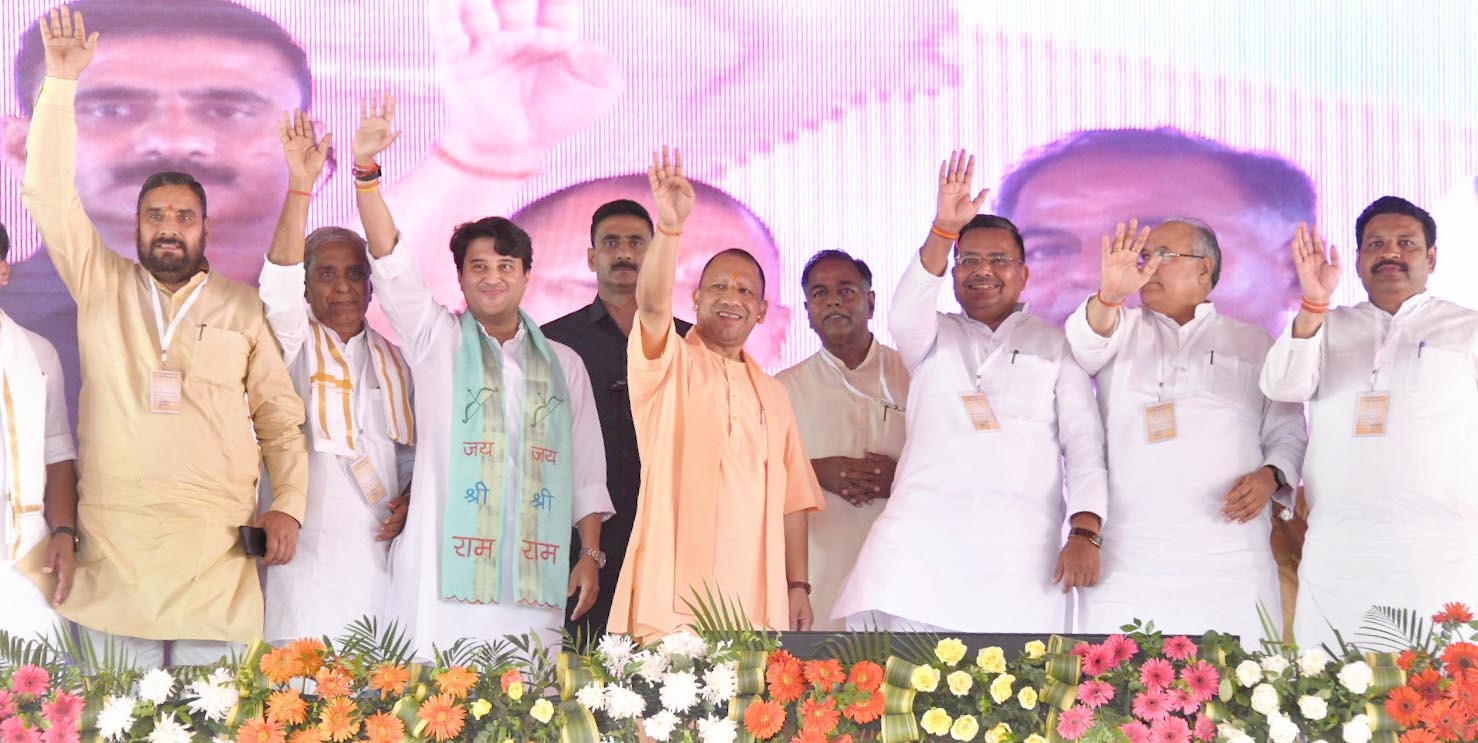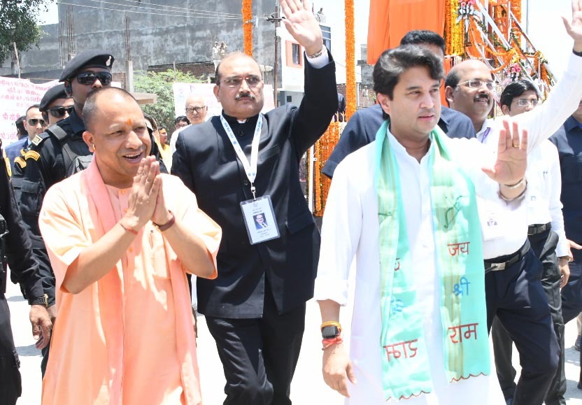 Earlier, CM Yogi and Jyotiraditya Scindia landed at Saifai airstrip and left for Mainpuri together.