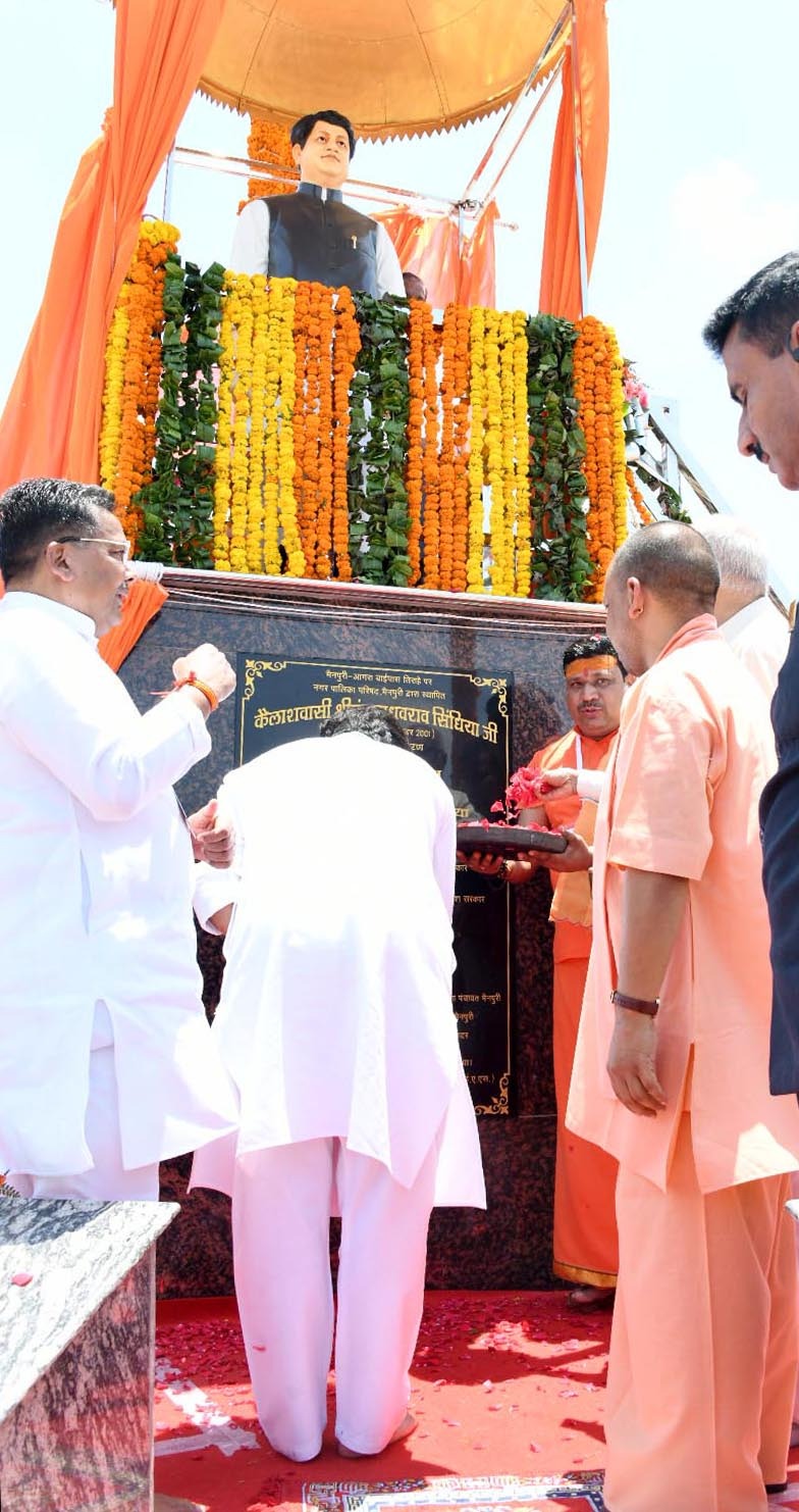 Mainpuri (Etawah): Uttar Pradesh Chief Minister Yogi Adityanath and Union Aviation Minister Jyotiraditya Scindia on Friday unveiled the statue of former Union Minister Madhavrao Scindia in Saifai.
