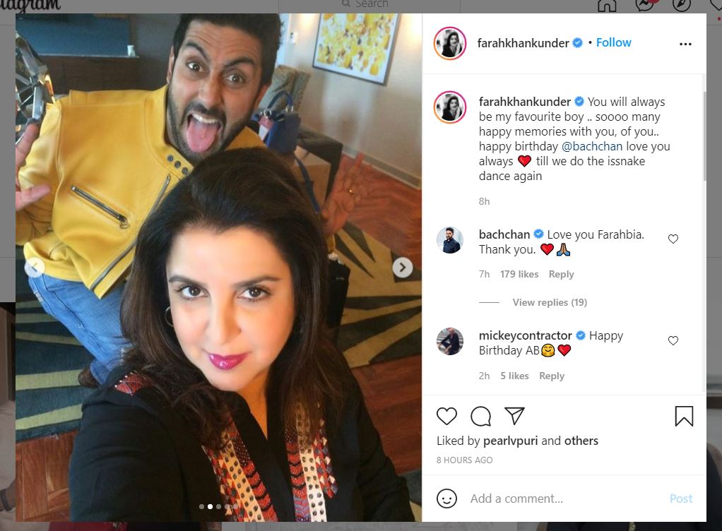 "You will always be my favourite boy .. soooo many happy memories with you, of you.. happy birthday @bachchan love you always, till we do the issnake dance again," she wrote in the caption.