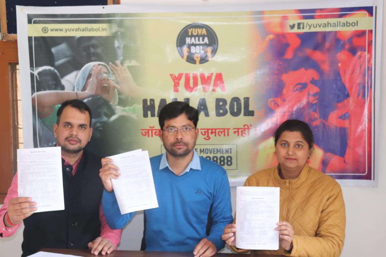 While showing a copy of the "Model exam code" to media persons, Govind Mishra demanded that Govt propose this code in the budget so that each Govt recruitment can be completed in maximum 9 months. Yuva Halla Bol has given a slogan of, "Model Code Lagu karo, 9 Maheene mein naukri do" for this.