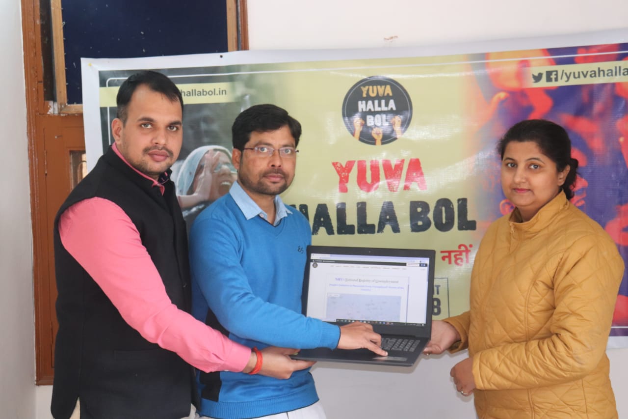 Addressing media persons couple of days before the union budget, Yuva Halla Bol launched a webpage for NRU and appealed unemployed youth to register. Anupam said that if Modi Govt doesn't announce NRU then Yuva Halla Bol will take this responsibility on itself and will organise camps to prepare the register of unemployed.