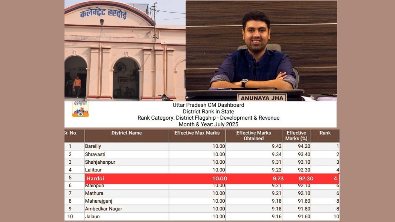 Hardoi: The Hardoi district is operating at a high level and making steady progress under the capable direction of District Magistrate Anunaya Jha. Hardoi is ranked first place in the division and fourth in the state in CM Dashboard ranking of Uttar Pradesh.